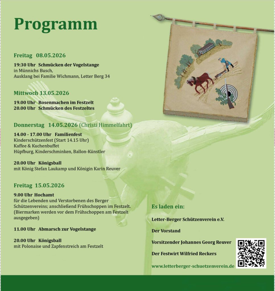 Der Letter Berger Schützenverein e.V. feiert in diesen Jahr am 14. und 15. Mai 2026 sein traditionelles Letter Berger Schützenfest! Das Familienfest und unser Kinderschützenfest, mittlerweile fester Bestandteil unseres Schützenfestes, wird auch in diesem Jahr durchgeführt.